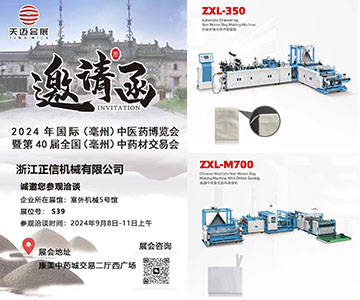 通知????安徽亳州中醫(yī)藥博覽會(huì)!我司將現(xiàn)場(chǎng)展示自動(dòng)穿繩茶包袋!高速線縫煎藥袋兩款機(jī)型!誠(chéng)邀新老客戶(hù)現(xiàn)場(chǎng)參觀洽談!